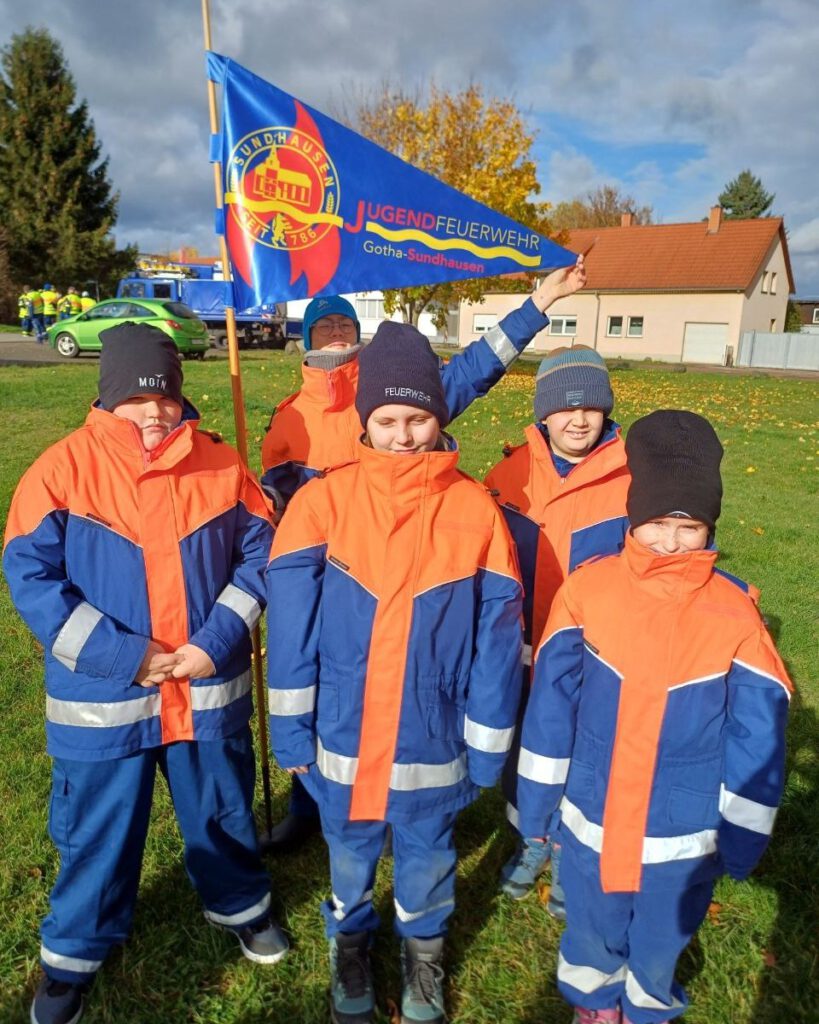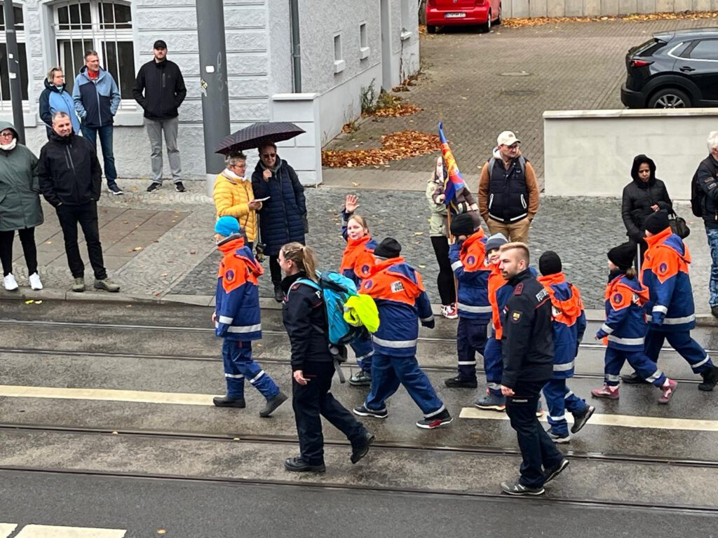 Unsere Jugendfeuerwehr mit unserer Jugendwartin Tanja Berndt marschierte im Block der Jugendfeuerwehren der Stadt Gotha, danach folgte unser TLF15 H3A und am Ende unser HLF10. Zwischen den beiden Fahrzeugen befand sich die W50 Drehleiter der IFA-Freund Eisenach (welche einst die Sundhäuser Drehleiter war). Die drei Fahrzeuge wurden von Kameraden von uns und Kameradinnen und Kameraden der Freiwilligen Feuerwehr Gotha-Stadtmitte fußläufig gesichert als sogenannte “Wagenengel”.
